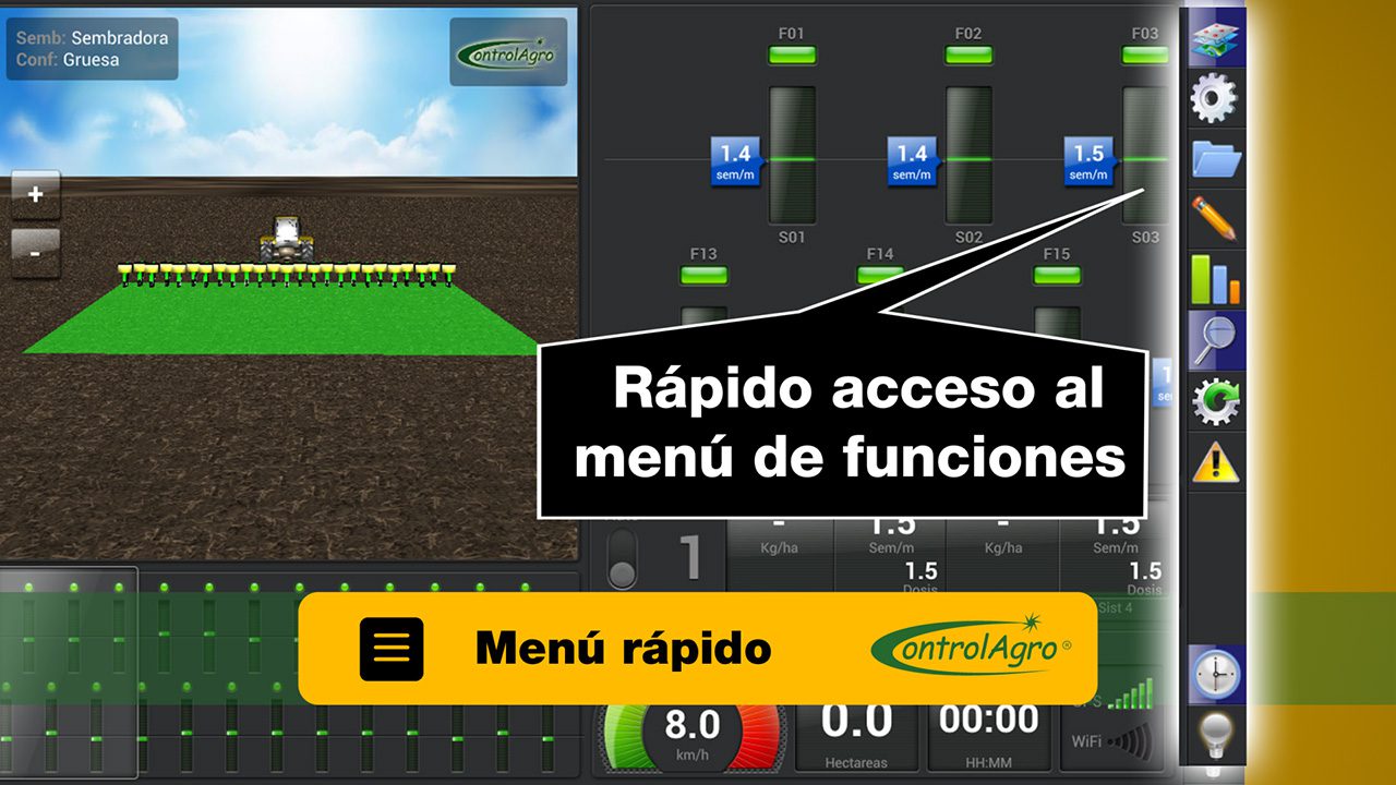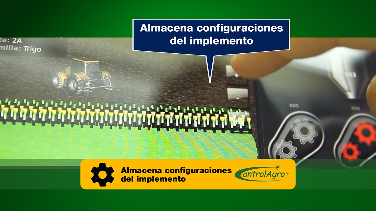 – Por cliente, lote y fecha. - Permite almacenar configuraciones preestablecidas para el implemento.