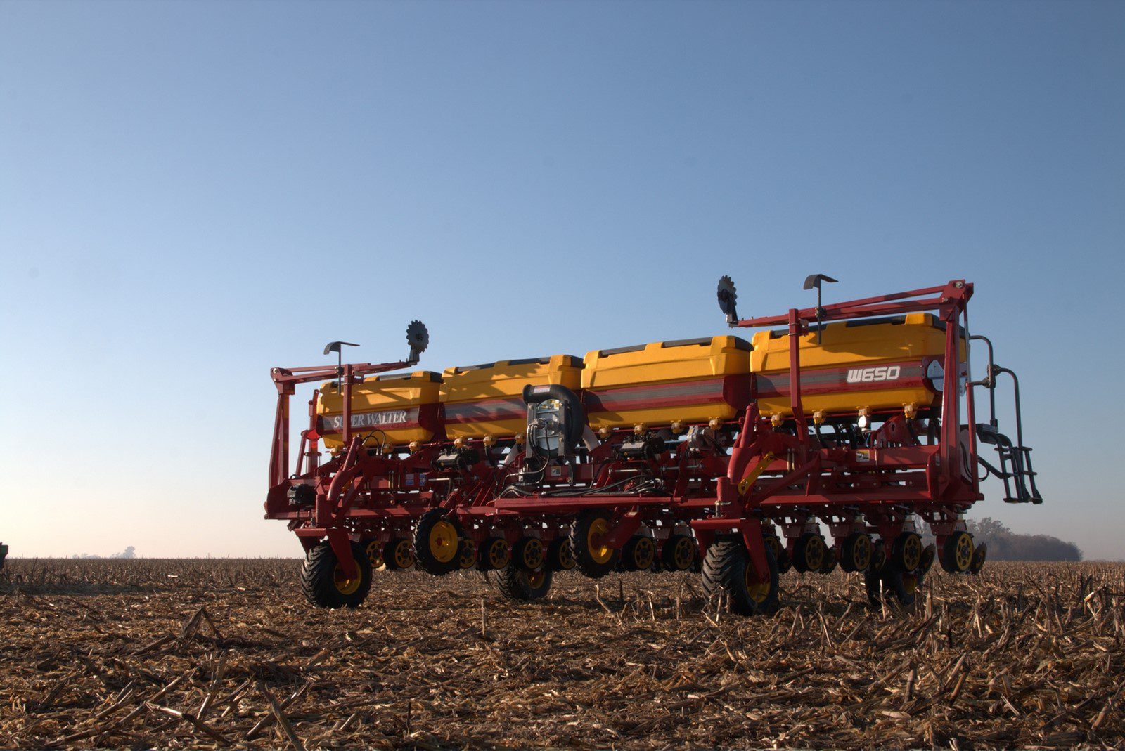 Sembradora de granos gruesos Súper Wálter W650, en versiones de 1 o 2 módulos (hasta 15,75 metros de ancho de labor), configurables a 35 cm, 38 cm, 42 cm, 45 cm, 52,5 cm, 70 cm y 100 cm entre líneas, con tiro de punta (3 metros de ancho en transporte) y fertilización simple o doble. El equipamiento incluye monotolvas de gran capacidad, trenes de siembra con doble disco abresurcos (16”), dosificación neumática/mecánica de semillas con caja de 54 velocidades, dosificación de fertilizantes con cajas de 36 velocidades (o cajas variadoras mecánicas o electrónicas) y rodados auto-orientables de alta flotación (400/60). Entre las innovaciones propone un sistema de cuchillas móviles de accionamiento hidráulico que permite regular la penetración desde la cabina del tractor. Permite la implantación monograno de soja, maíz, girasol y algodón, entre otros cultivos.